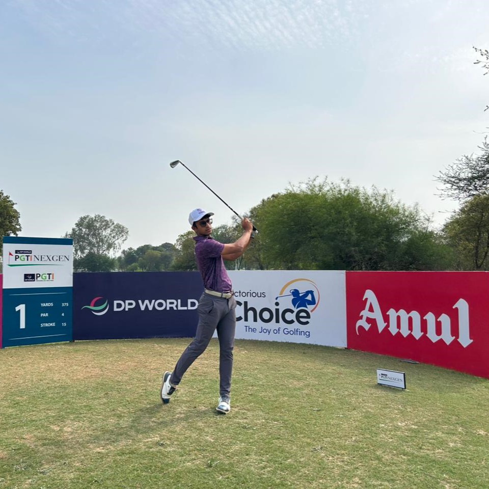 The trio of Ayaan Gupta, Lakshya Nagar and Malaysia’s Ruhanraj Vinayagam returned scores of three-under 69 to be tied third. Ayaan and Ruhanraj, like Aryav, are also playing their debut season on the DP World PGTI.