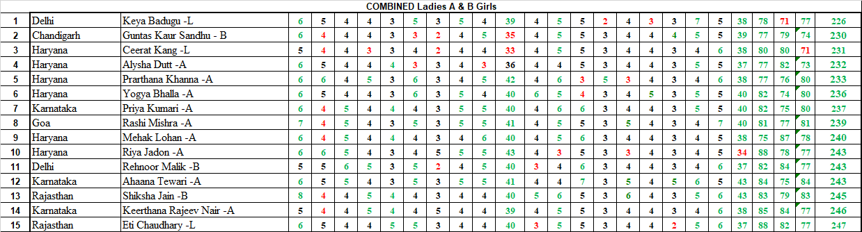 Chandigarh golfer Guntas Kaur Sandhu (77-79-74) won the A&B Girls combined category, as well as the B Girls, at an overall score of 230. Alongside winning the two categories, Guntas also finished second in the Ladies & A&B Girls Combined category.