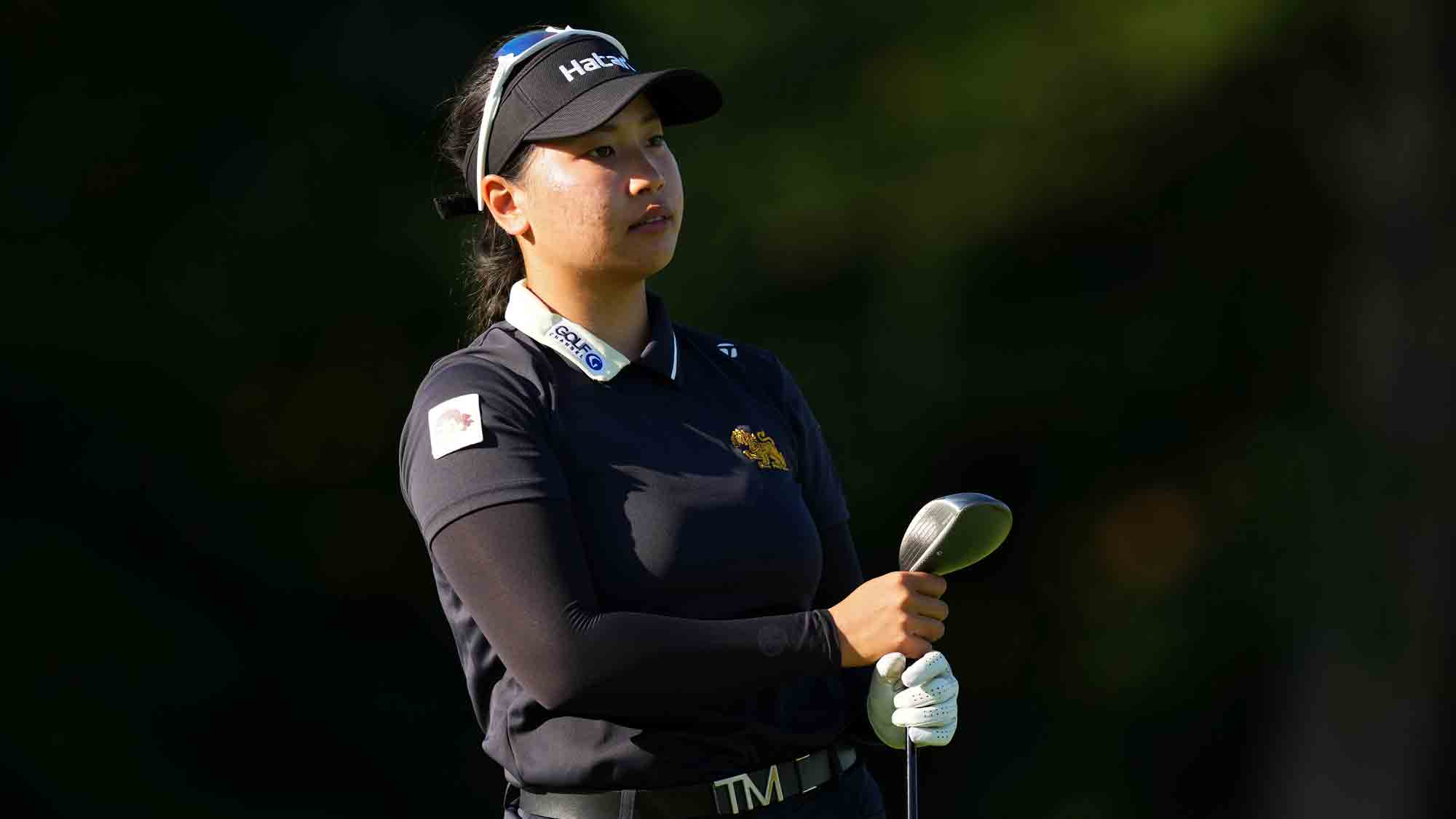 Chanettee Wannasaen of Thailand watches their shot from the ninth tee during the second round of the Kroger Queen City Championship presented by P&G 2025 at TPC River’s Bend on September 12, 2025 in Cincinnati, Ohio.